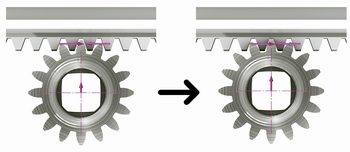Provedení "Excenter" má hřídel uloženou na otočném excentru, jehož natočením je možno eliminovat vůli v ozubeném převodu :