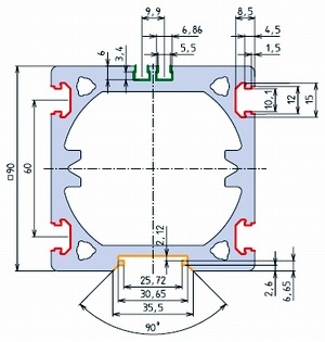 (závitové kameny M8) - drážka pro lineární snímač polohy