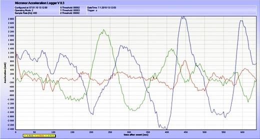 Citlivé snímače v přístroji měří současně zrychlení ve třech navzájem kolmých osách (X,Y,Z) a naměřené údaje automaticky zaznamenávají do paměti (Flash USB) uvnitř přístroje. Paměť lze z přístroje kdykoliv vyjmout a pomocí grafického programu na PC prohlédnout záznamy dat. Variantně lze data do PC stáhnout i po lince. Data je možno pro další zpracování exportovat do formátu Excel nebo vytisknout jako graf. U každého záznamu je uveden reálný datum a čas. Přístroj je napájen ze zabudované baterie, která vydrží asi 2 roky.