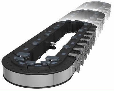 Modularita systému umožňuje flexibilně vystavět požadovanou transportní dráhu. Každý vozík systému tvoří nezávislý lineární motor a jeho pohyb je plně programovatelný.